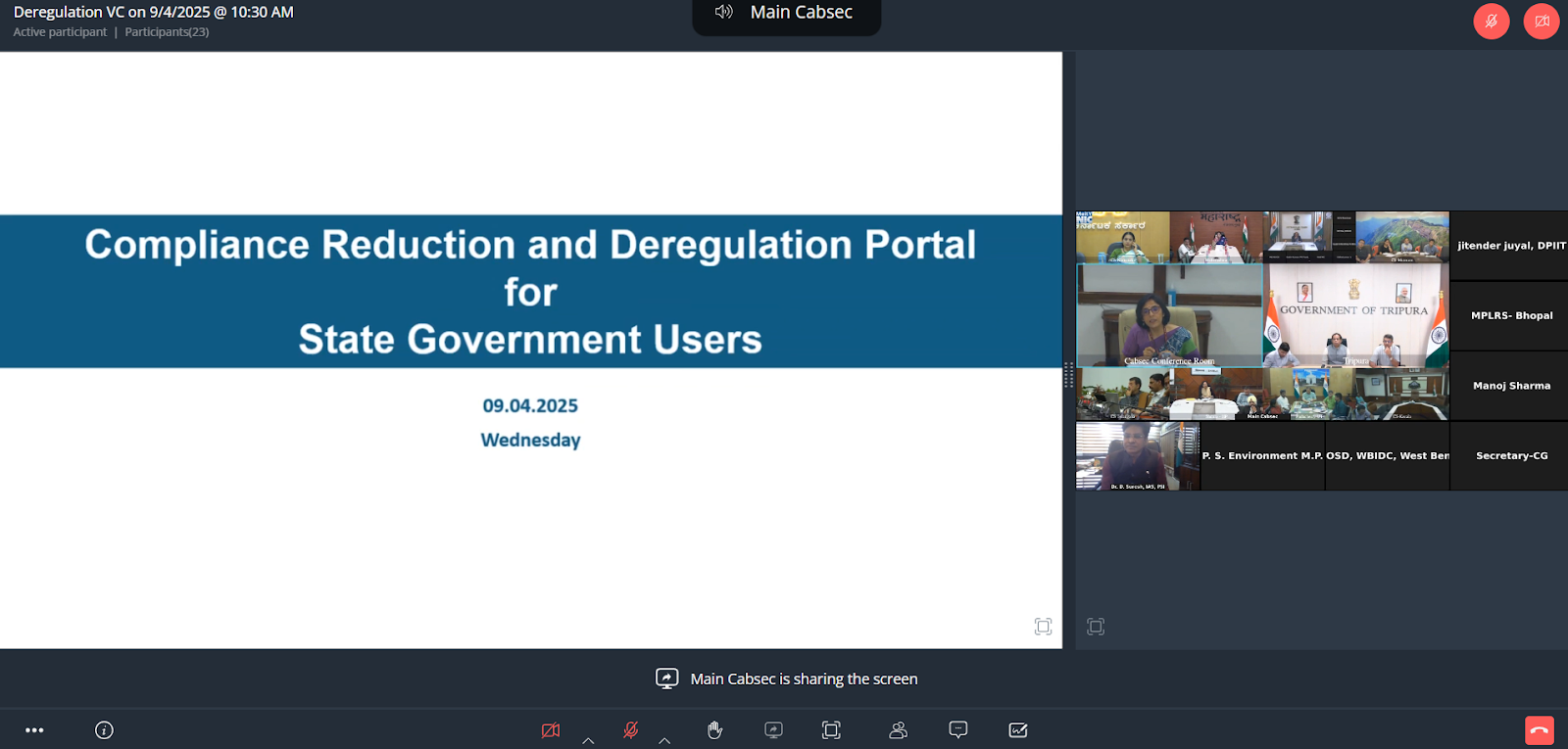 12:30 pm – 1:30 pm A meeting before the Hon’ble Chief Secretary, Government of Karnataka to discuss compliance reduction & deregulation docket.