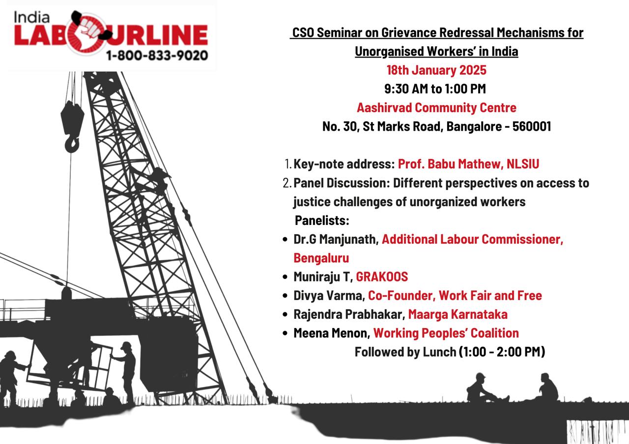 Assessing justice to informal sector workers- Challenges & mechanisms. A Consultation with stakeholders held at Ashirwad. Organized by India LaourLine.